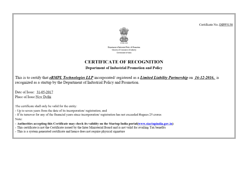 Founder of eRMPL is offering Honarary Service as Chief Mentor and Technology Advisor